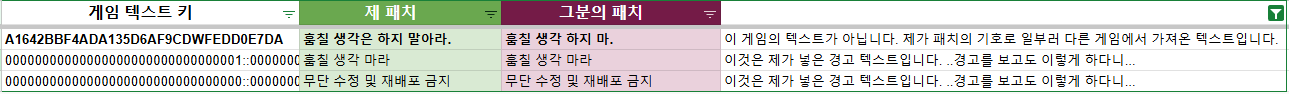 오직 텍스트에 대응하는 KEY만 존재할 뿐이죠. 그러니 제 패치를 뜯어서 원문을 추출한다는 주장은 성립하지 않습니다.