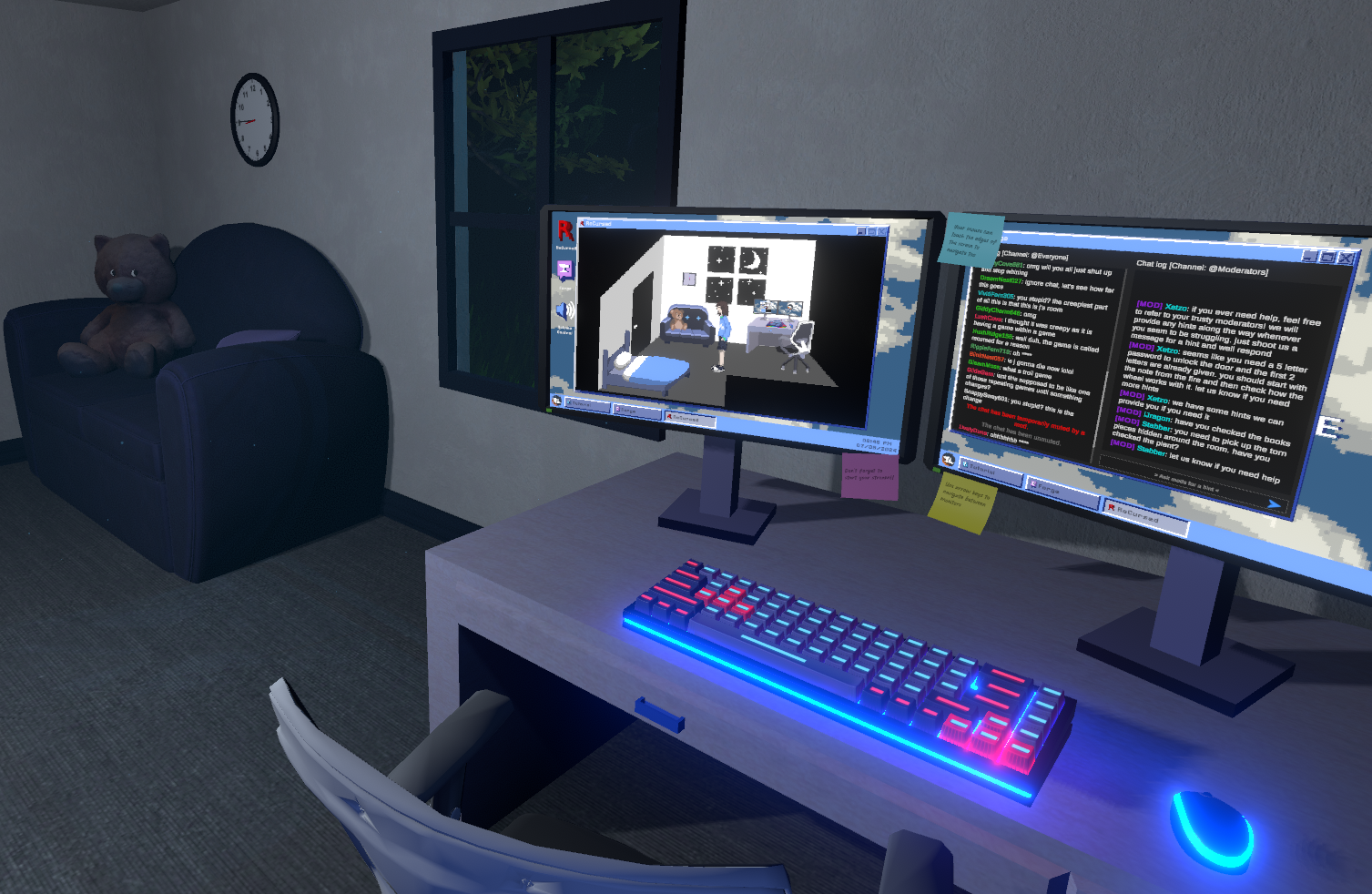 게임 내의 채팅창 이름, 매니저의 이름과 채팅 내용은 모두 수탉님과 관련 있게 되었습니다.